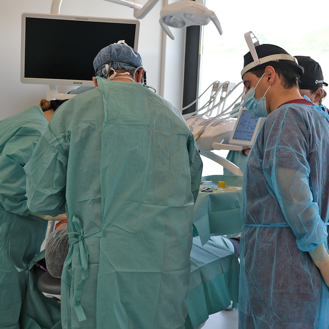 One of the central moments of the course was the “Over the Shoulder” surgery session, enabling delegates to observe, in real time, implant placement (in the upper and/or lower jaw) and the laboratory procedure for the fabrication of an immediate provisional prosthesis.
