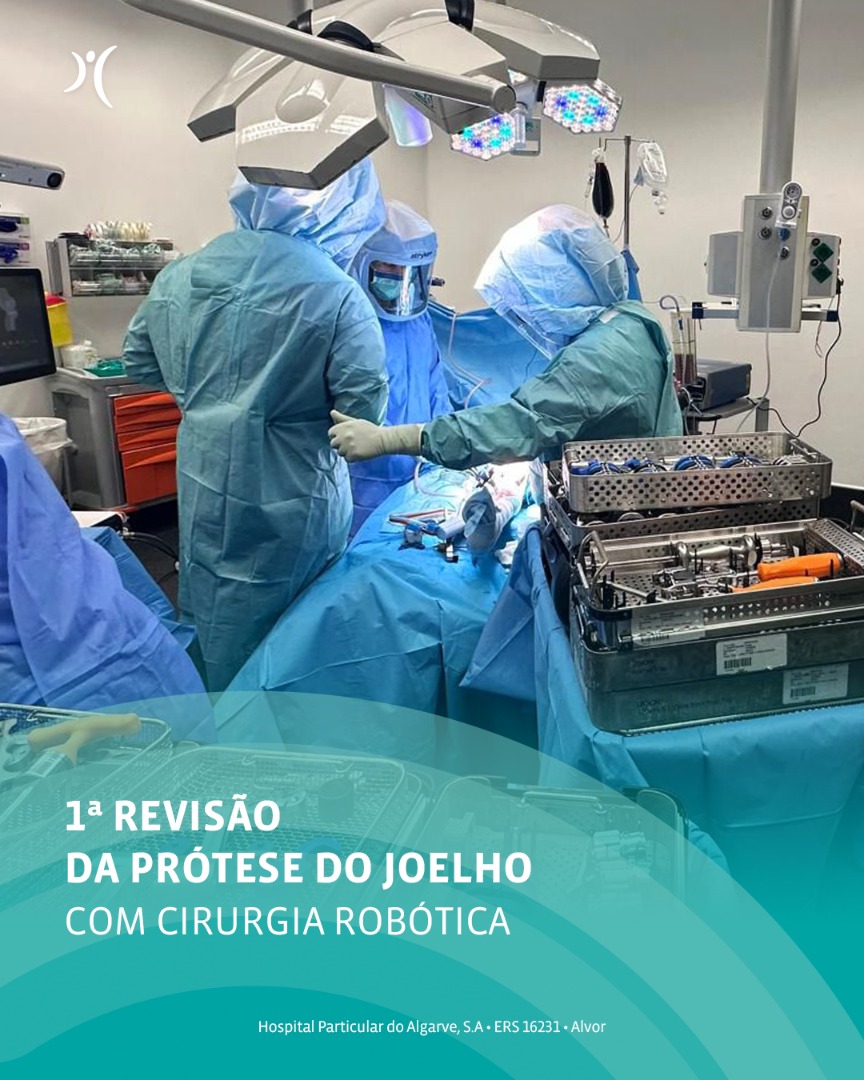 The procedure took place last Tuesday at Hospital Particular do Algarve – Gambelas, in Faro, and involved the revision of a total knee prosthesis, with replacement of the implant due to persistent pain following a previous knee arthroplasty.