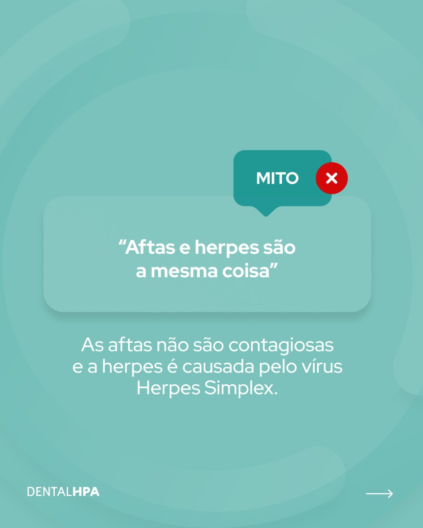 Outro mito comum é confundir aftas com herpes labial. As aftas são uma resposta inflamatória a estímulos internos ou externos e não são contagiosas, enquanto a herpes é provocada pelo vírus Herpes Simplex, com pequenas vesículas infeciosas que podem espalhar-se pelo contacto.