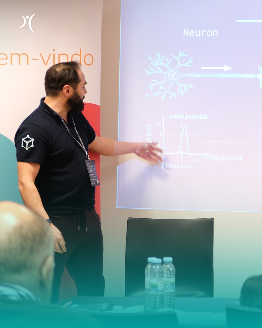 O curso teve início com uma introdução à temática da Inteligência Artificial, seguindo-se uma abordagem aos seus fundamentos conceptuais, apresentada pelo Prof. Doutor Manuel Guimarães. Ao longo da tarde, o Prof. Doutor David Belo explorou os desafios da sua aplicação em contexto de saúde, com enfoque na responsabilidade e ética da IA.
