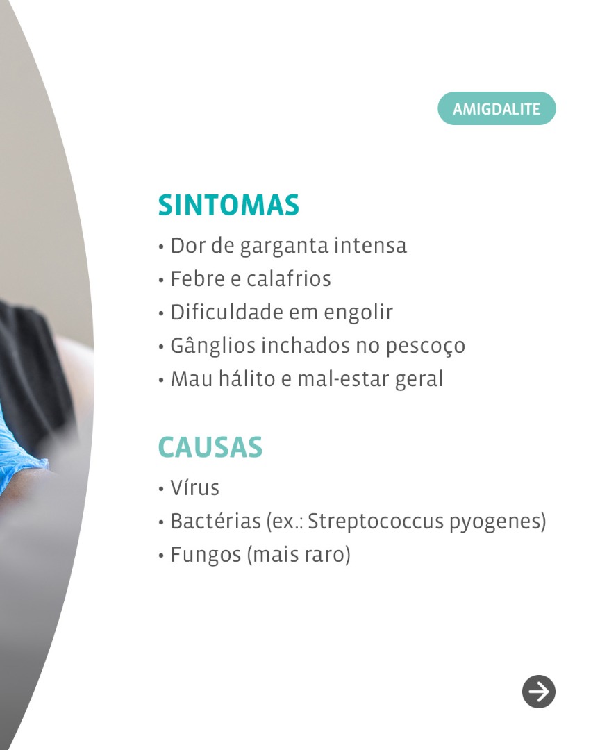 A amigdalite é uma inflamação das amígdalas, que fazem parte do sistema imunitário e que funcionam como primeira barreira contra microrganismos que entram pela boca e nariz. A inflamação pode ser causada por vírus, bactérias e, em casos mais raros, por fungos. A doença pode ser aguda, com início súbito e duração limitada, ou crónica, quando os episódios são recorrentes e afetam a qualidade de vida.
