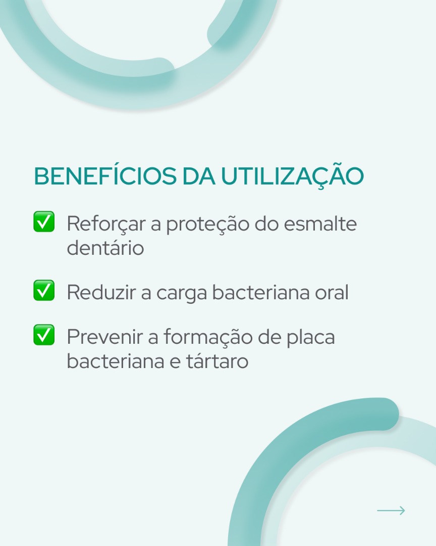 • Respeitar o tempo de bochecho (cerca de 40 segundos a 1–2 minutos);