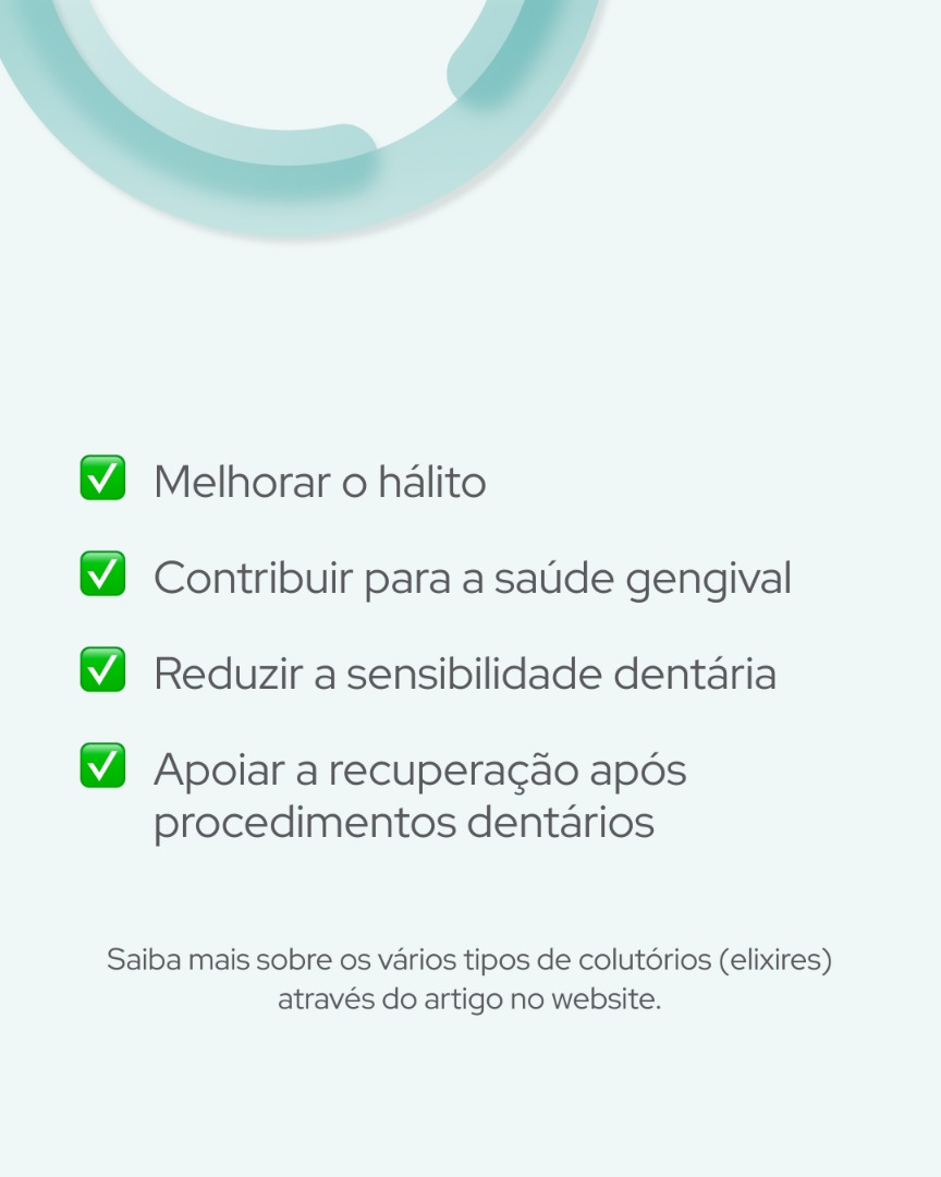 Os colutórios (também designados como elixires orais) constituem um complemento relevante da higiene oral diária. A sua utilização adequada contribui para a prevenção de diversas patologias, ajuda a controlar a carga bacteriana, promove o equilíbrio da flora oral e reforça a proteção dos dentes e das gengivas.