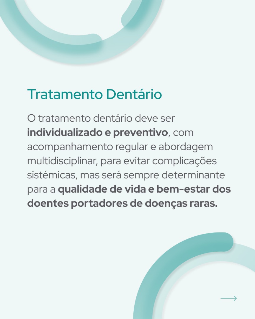 A ausência de cuidados de saúde oral adequados pode agravar complicações sistémicas, reforçando a importância da medicina dentária como componente essencial dos cuidados globais em doenças raras.