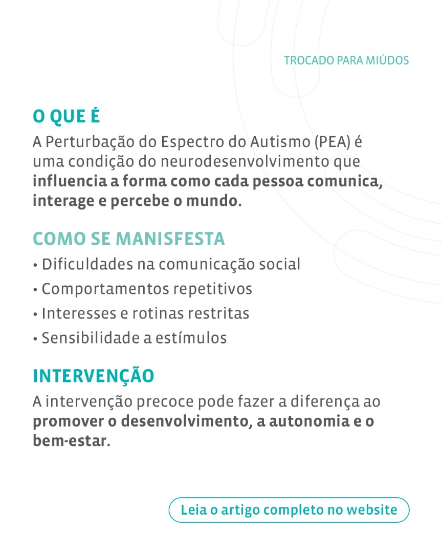 A Perturbação do Espectro do Autismo (PEA) é uma condição do neurodesenvolvimento que acompanha a pessoa ao longo da vida, influenciando a forma como comunica, interage socialmente e percebe o mundo.  No âmbito do Dia Mundial da Consciencialização do Autismo, é fundamental promover o conhecimento e a compreensão desta realidade, contribuindo para uma sociedade mais informada, inclusiva e empática.