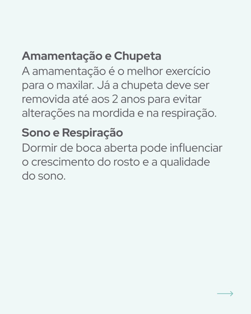 A amamentação é o melhor hábito de sucção que o bebé pode ter, uma vez que estimula o crescimento do maxilar superior, fortalece os músculos da deglutição, mastigação e fala e ajuda a formar um palato mais amplo.