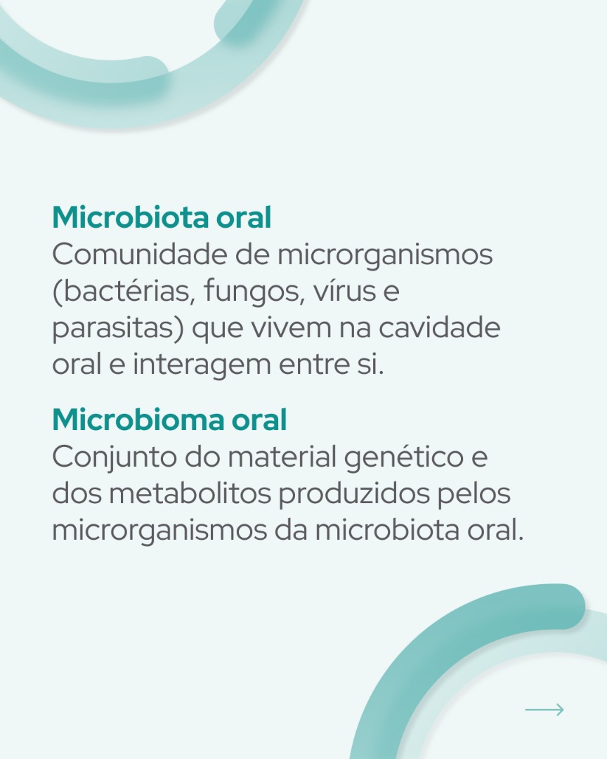 Por sua vez, o termo microbioma oral refere-se ao património genético, DNA e RNA, dos microrganismos que constituem a microbiota, bem como as substâncias ou metabolitos por si produzidos no ambiente envolvente. O estudo do microbioma tem permitido perceber as relações estabelecidas no ecossistema oral e de que forma influenciam não só a saúde/doença oral como também a saúde/doença sistémica.