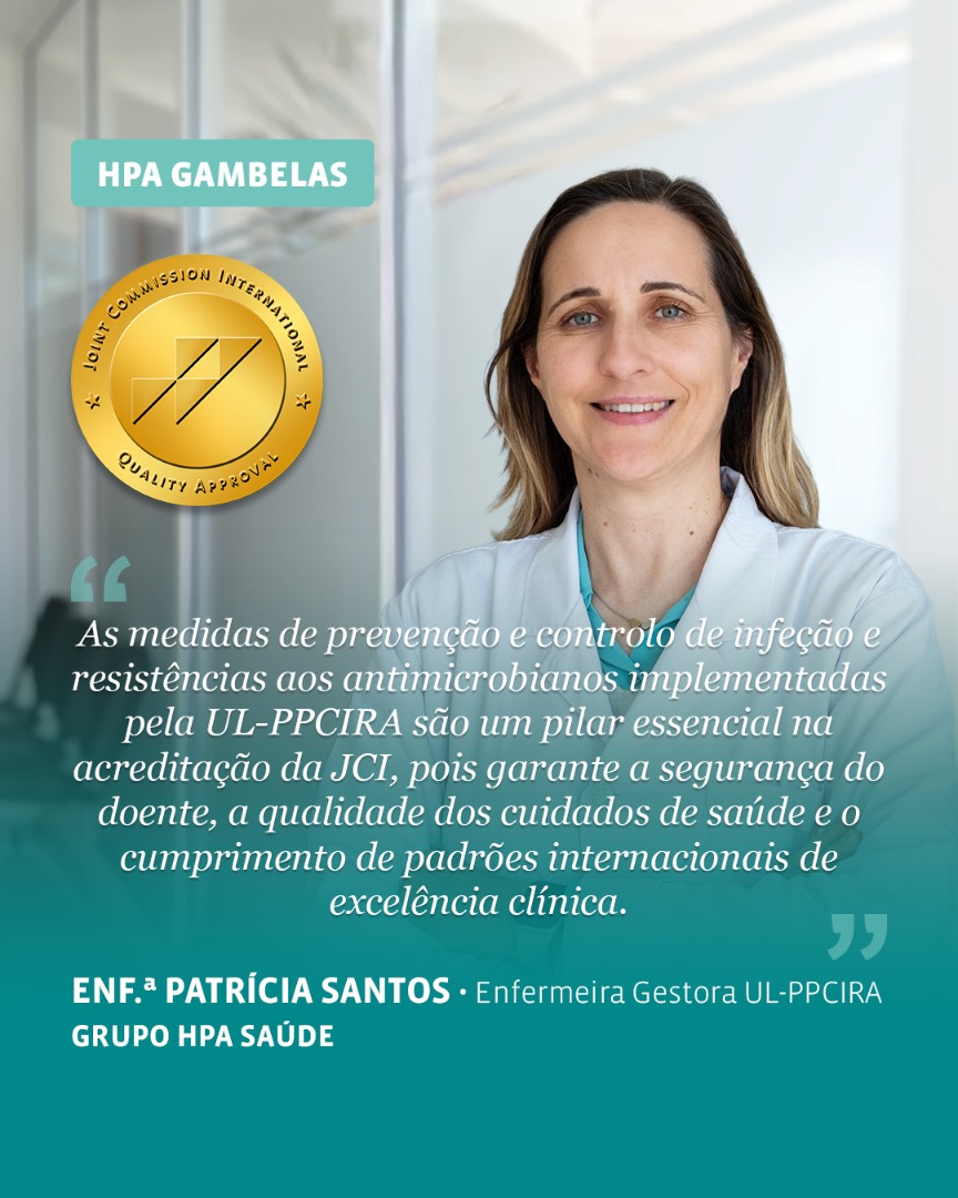 As medidas de prevenção e controlo de infeção e resistências aos antimicrobianos implementadas pela UL-PPCIRA são um pilar essencial na acreditação da Joint Commission International (JCI), pois garante a segurança do doente, a qualidade dos cuidados de saúde e o cumprimento de padrões internacionais de excelência clínica.